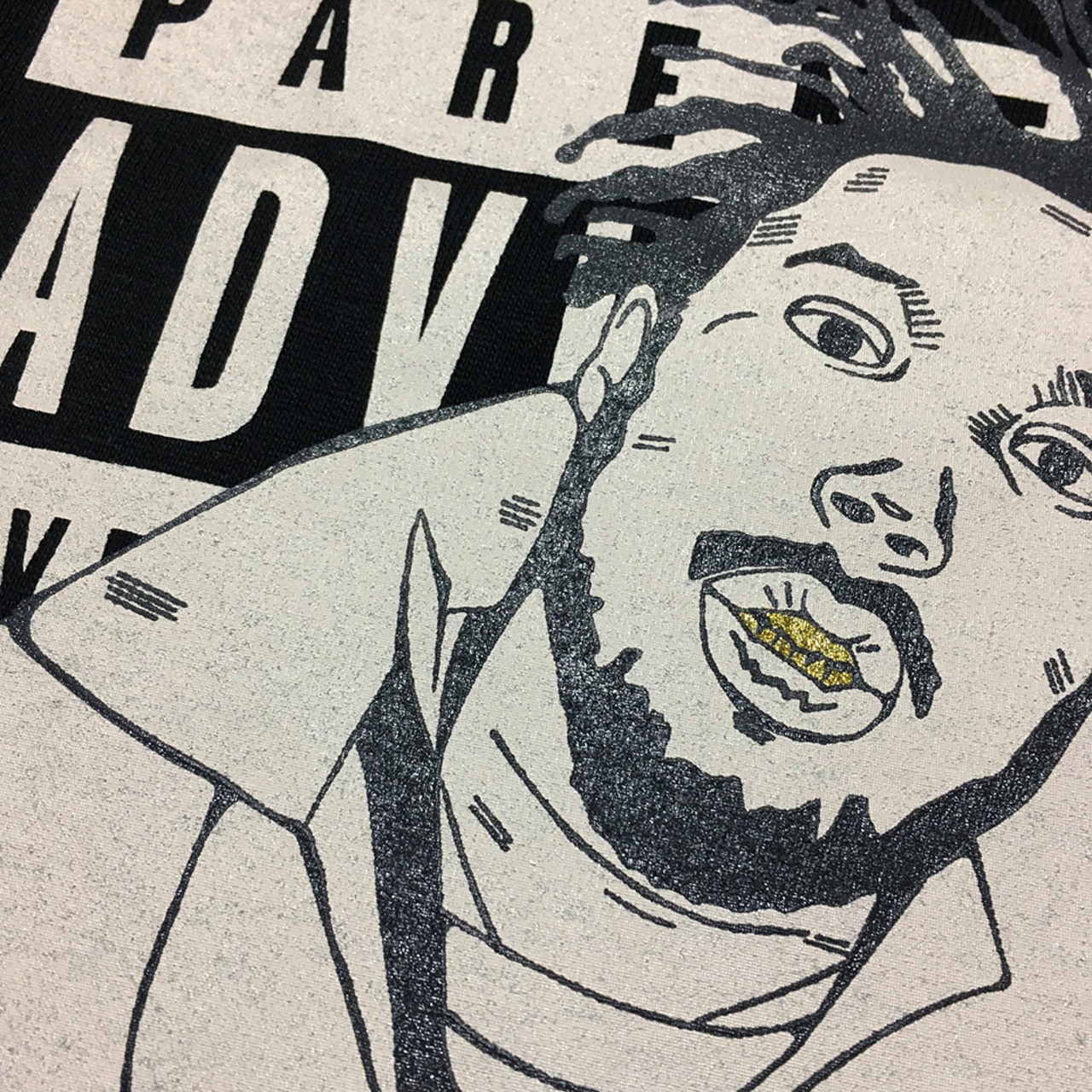 数々の奇行でも有名な彼のアイコンの一つであるGrillzを、ゴールドインクで光らせています。