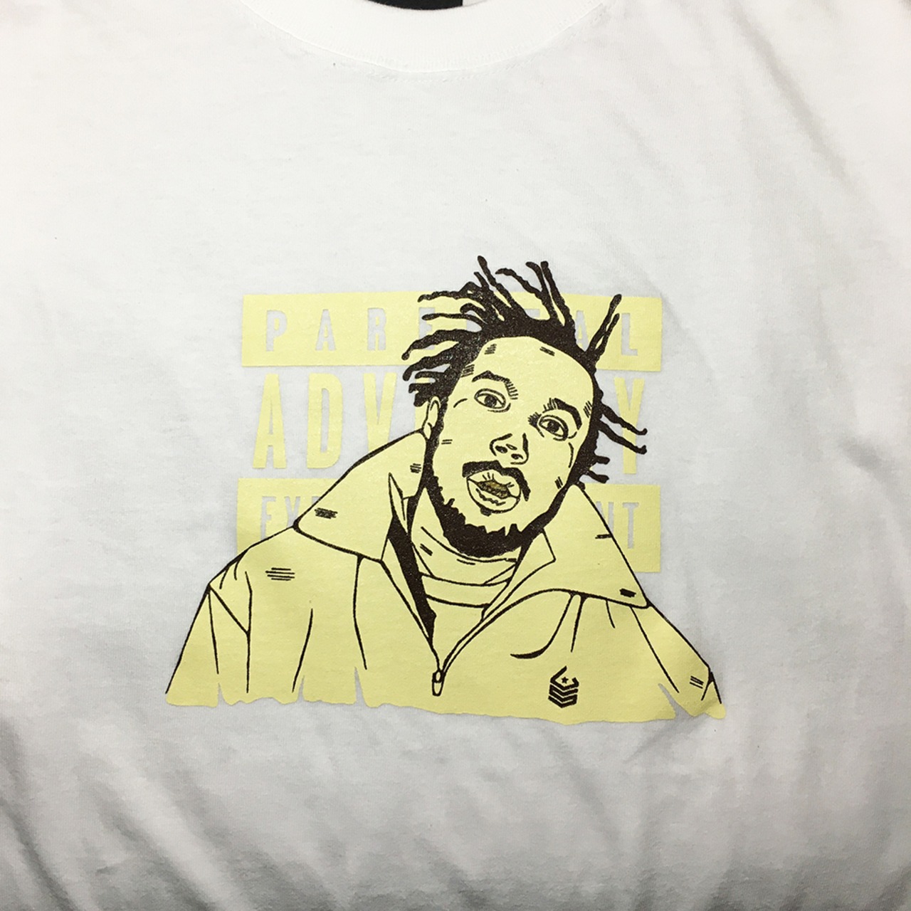 超個性派集団の一人。ろれつがまわっていないトリッキーなラップスタイルで、多くの人から熱烈に支持され愛されたブルックリン出身の伝説的なラッパーをイラストに落とし込んだTシャツ。