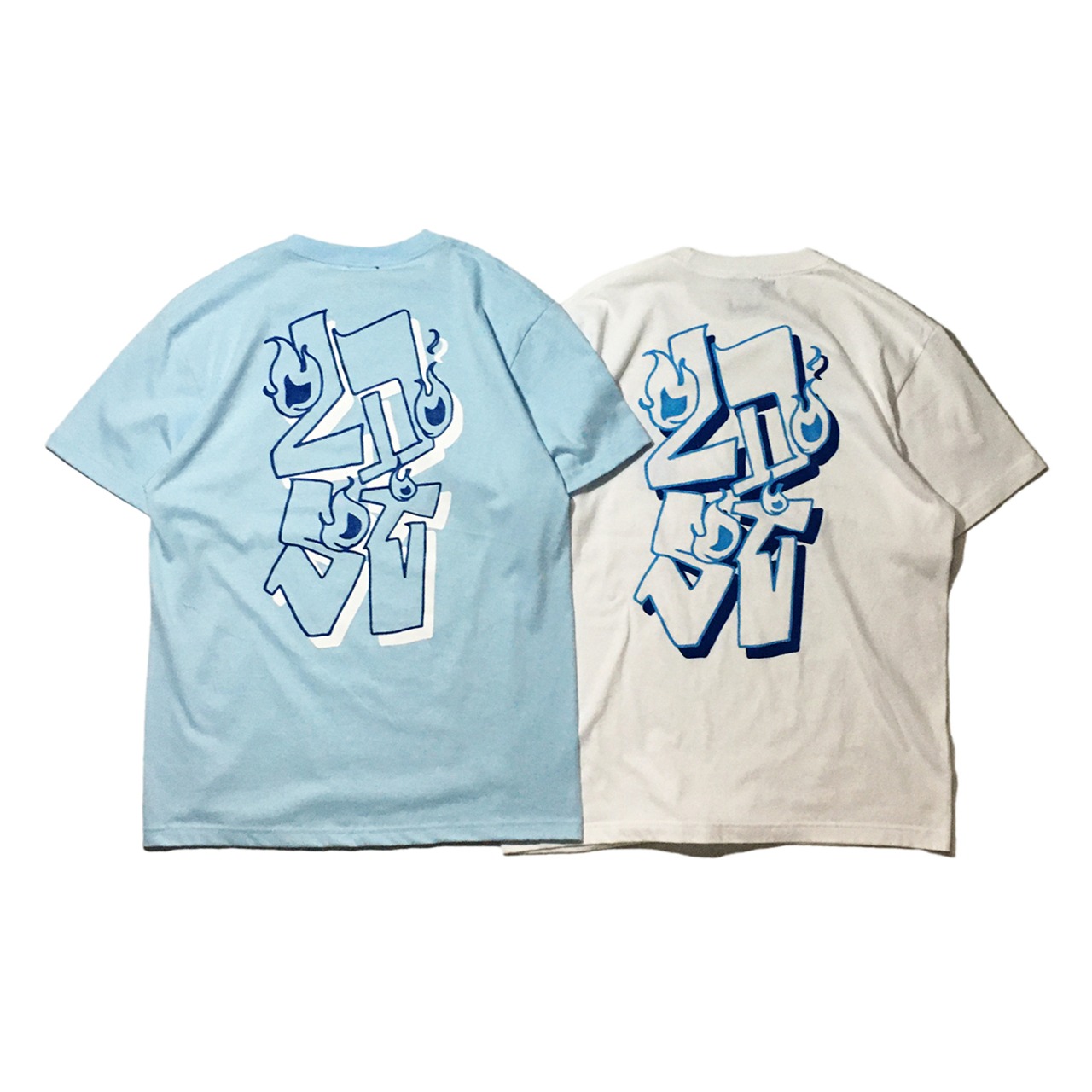 バックには大きく2色で、フロントには左胸に1色でプリント。