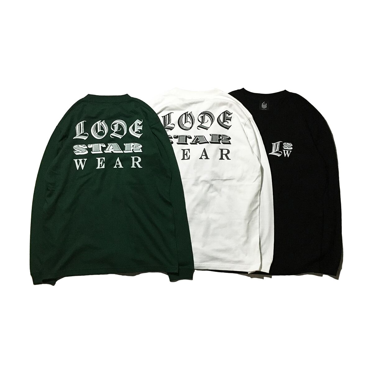 3種類のフォントを組み合わせたデザインをプリントしたリブ付きロングスリーブTシャツ。