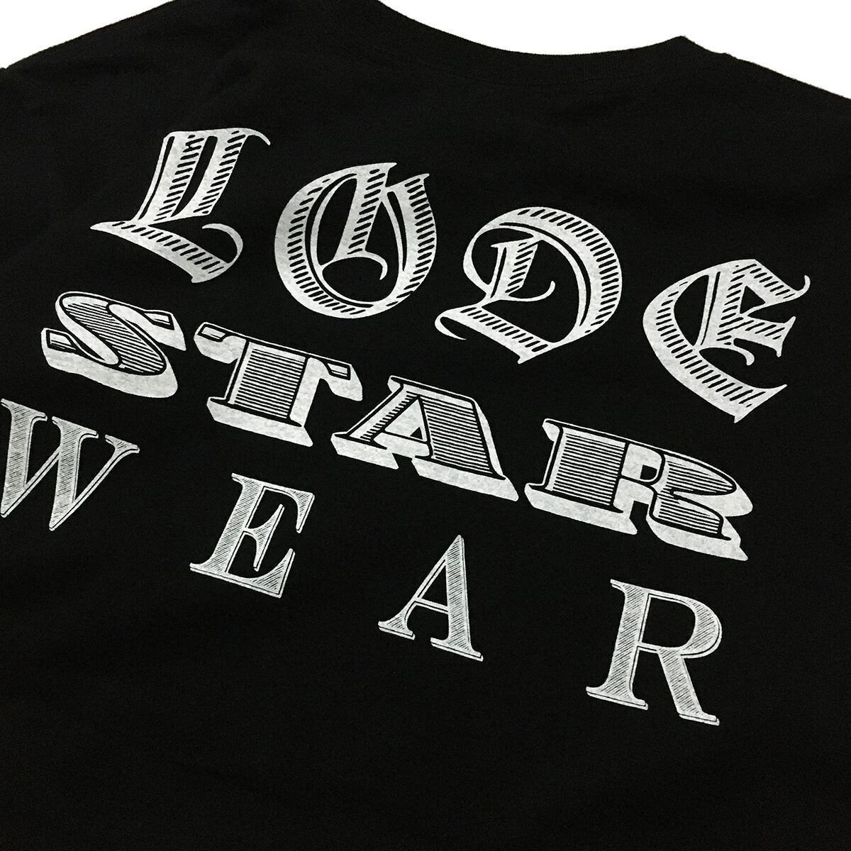3種類のフォントを組み合わせたデザインをプリントしたリブ付きロングスリーブTシャツ。