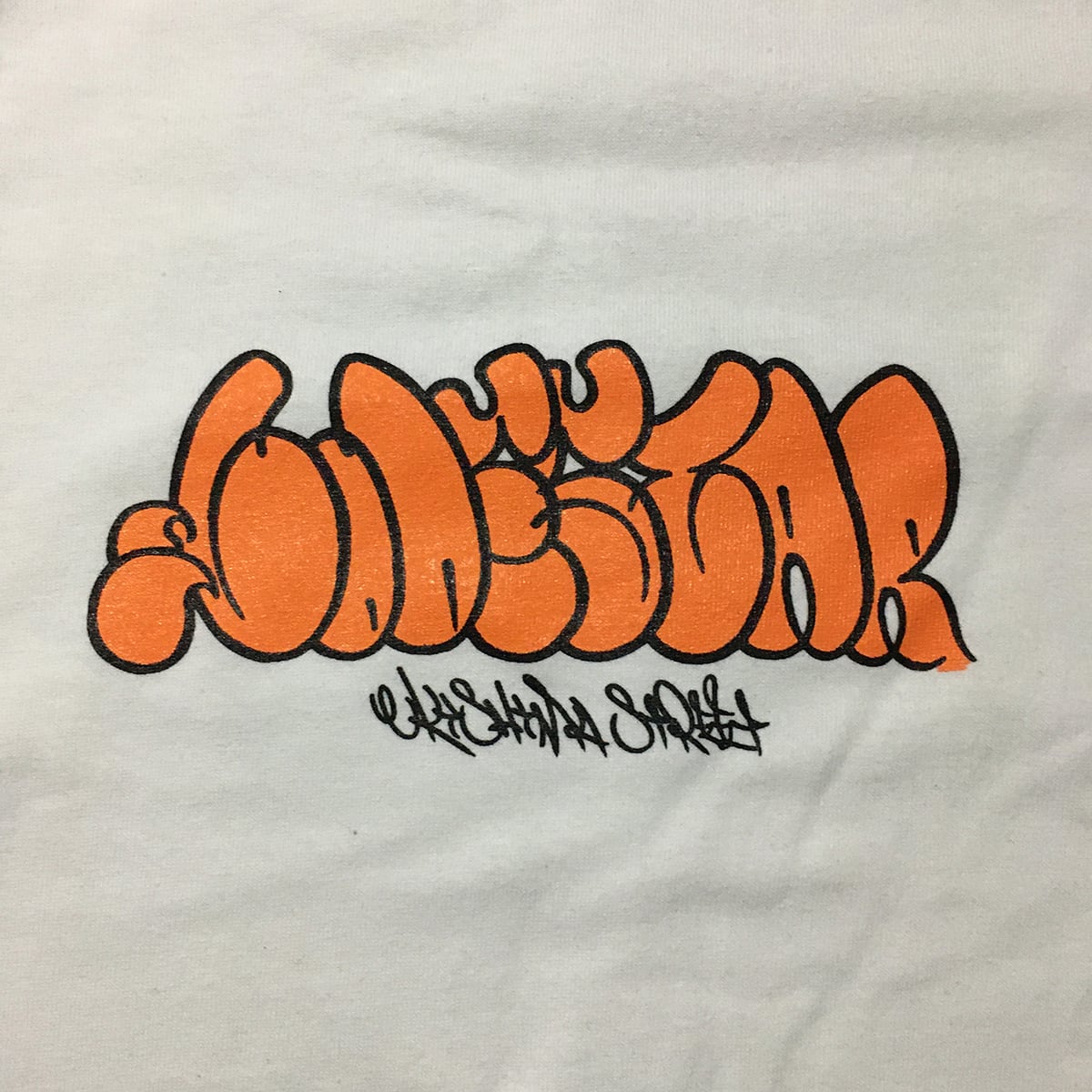 THROW UPで表現したロゴをプリントした、ロングスリーブTシャツ。