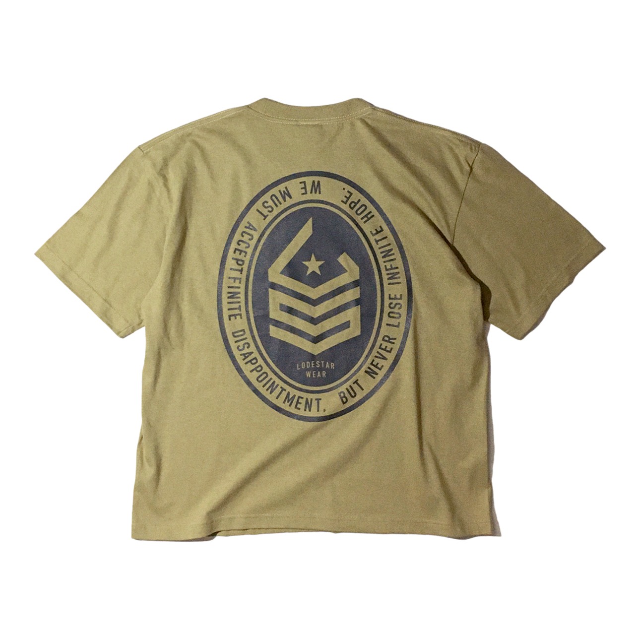 楕円形の中にロゴや某革命家のメッセージを落とし込んだデザインのTシャツ。