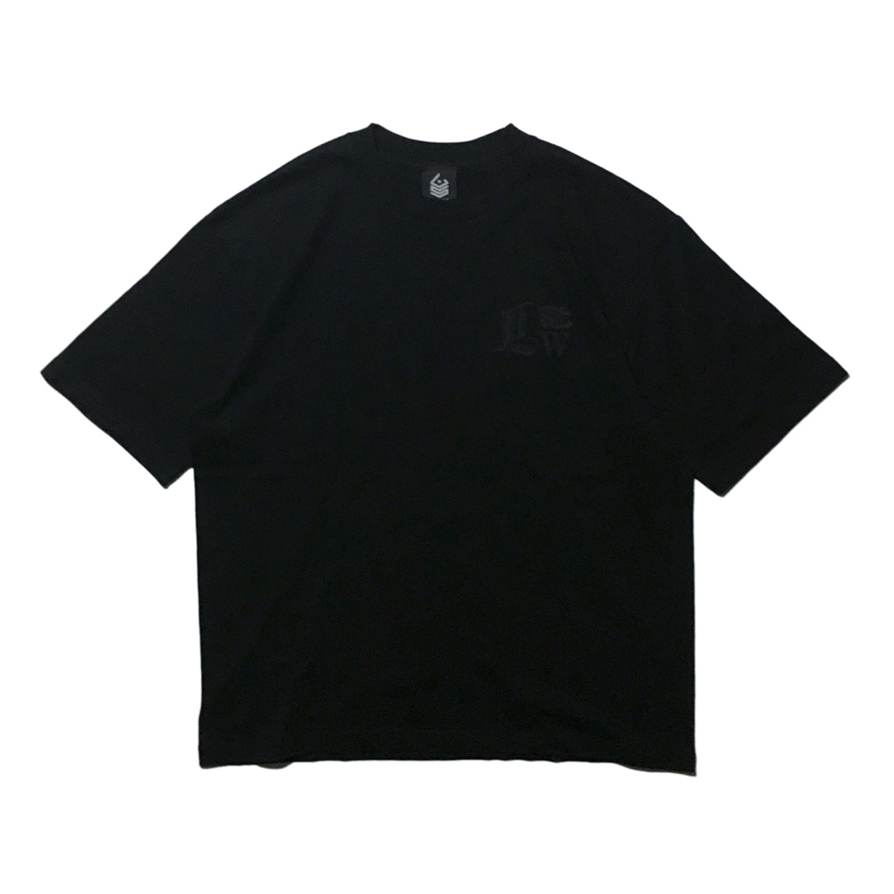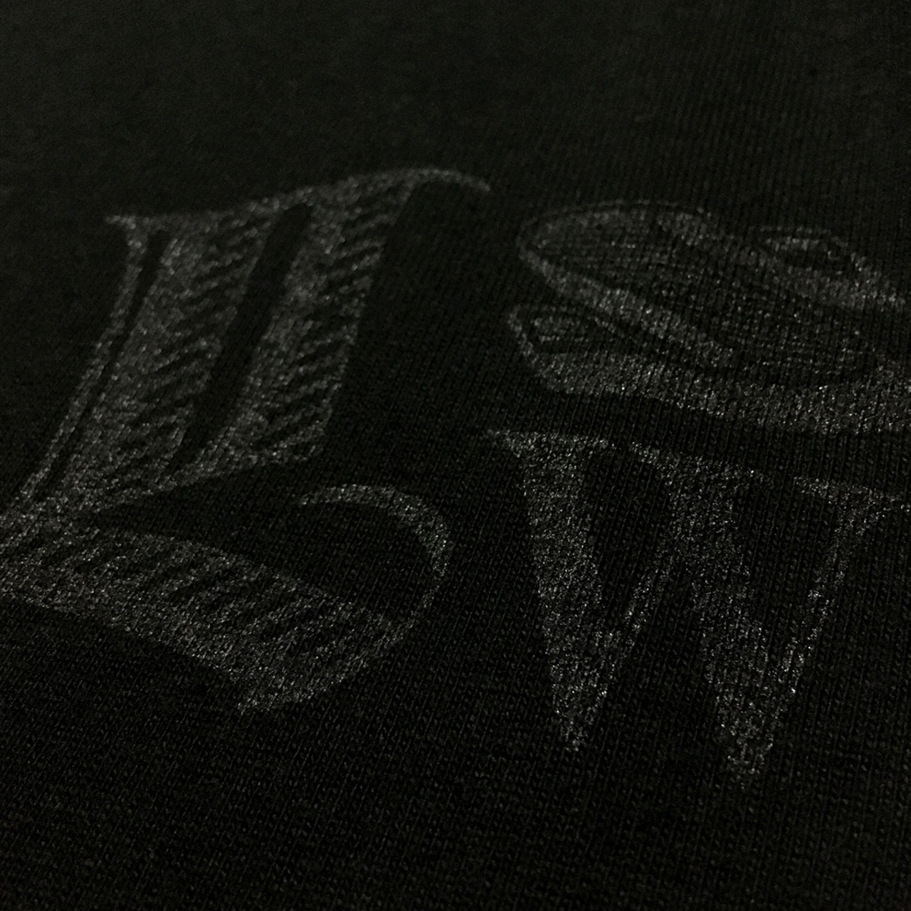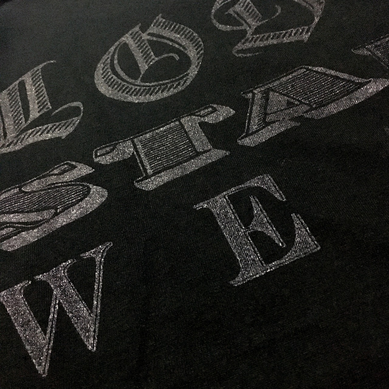3種類のフォントを組み合わせたデザインをプリントしたTシャツ。