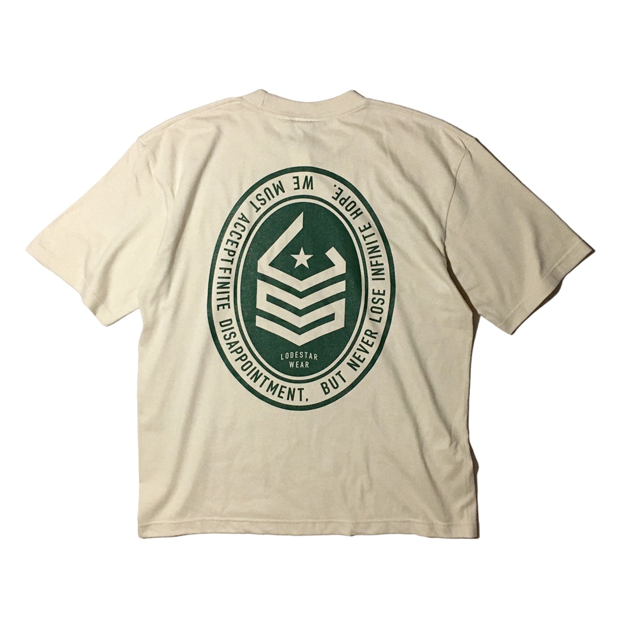 楕円形の中にロゴや某革命家のメッセージを落とし込んだデザインのTシャツ。